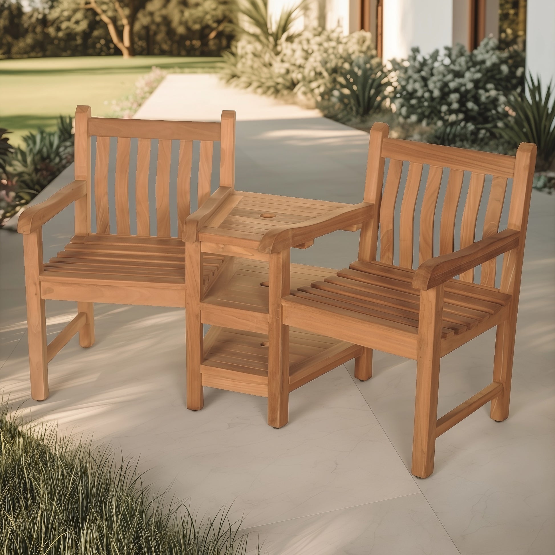 A cosy spot for intimate chats, the Bramblecrest Tete a Tete bench is sure to lure you outside. Some may call this a 'Love Seat' but whatever you call yours, it is sure to provide a focal point in your garden. With a bottle of fizz on the table and rugs and throws on the shelves below, you' re all set for some long conversations.