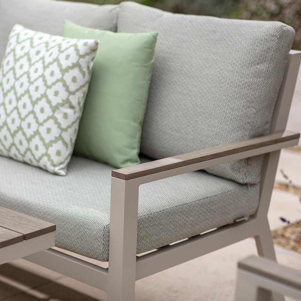 Elevate your outdoor dining experience with the new Bramblecrest Bramblecrest Zurich Corner Set, featuring a piston-adjustable table. Personalise to every occasion, from casual afternoon drinks to a full family feast, by a simple press of the lever.