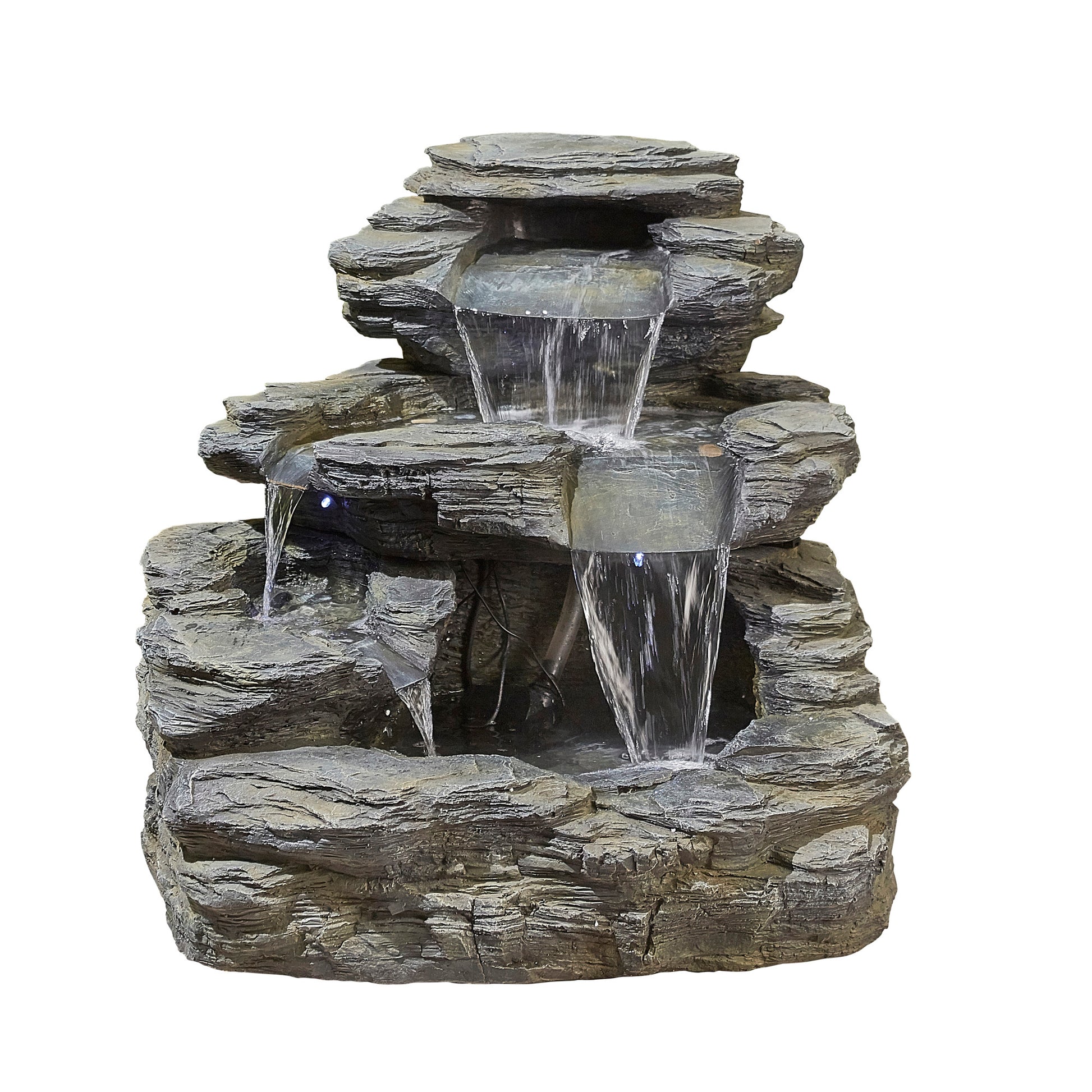 Slate-effect water feature that sits perfectly in any garden landscape. Softly cascading water simulates the sound and appearance of a natural water fall or stream.