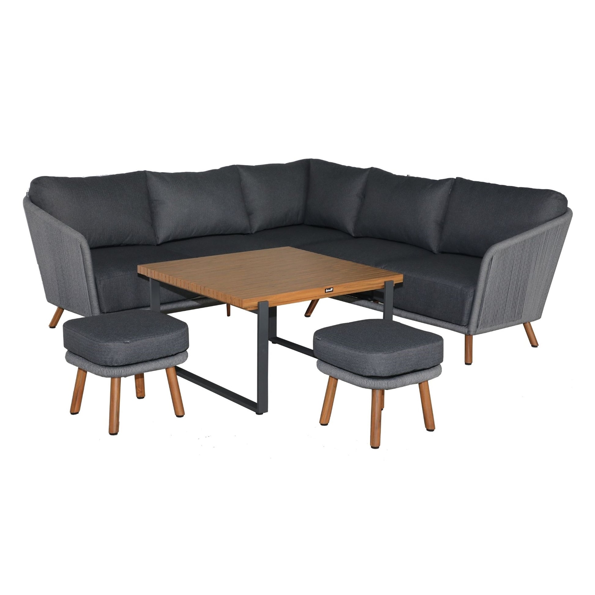 Blending oppulence and comfort with serene natural tones; the Hartman Etna Corner Set is a breadth of fresh air for outdoor furniture. The Square Casual Dining Set is perfect for friends and family to get together for BBQ's or after dinner drinks. Fabricated with a beautiful all weather rope, which is paired with our extra chunky sumptuous Weatherready® cushions - the most comfortable cushions for outdoor furniture. Finished with our new Folie (wood-look) foiled aluminium table tops which give you the beautiful look of natural wood, without the discolouration and maintenance.