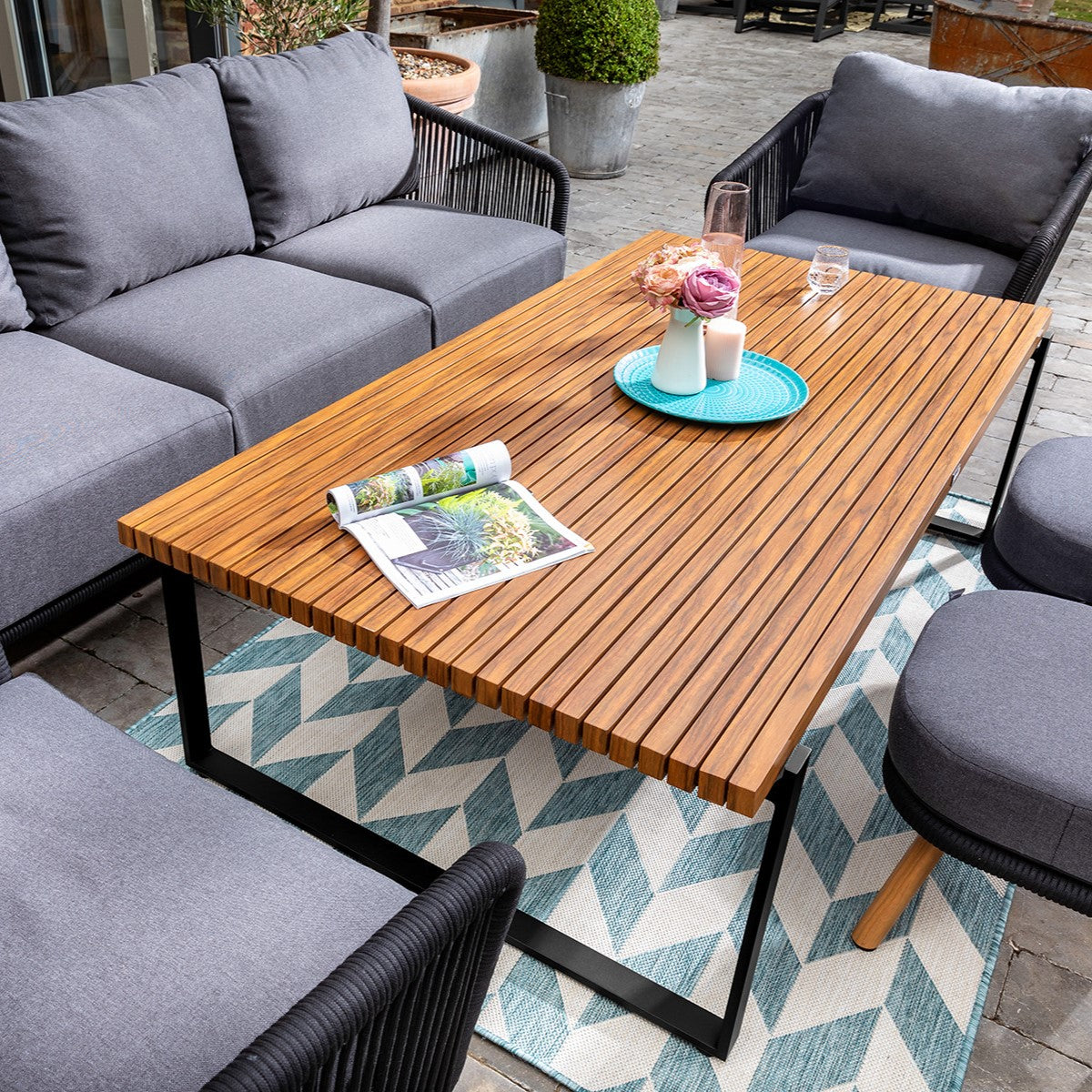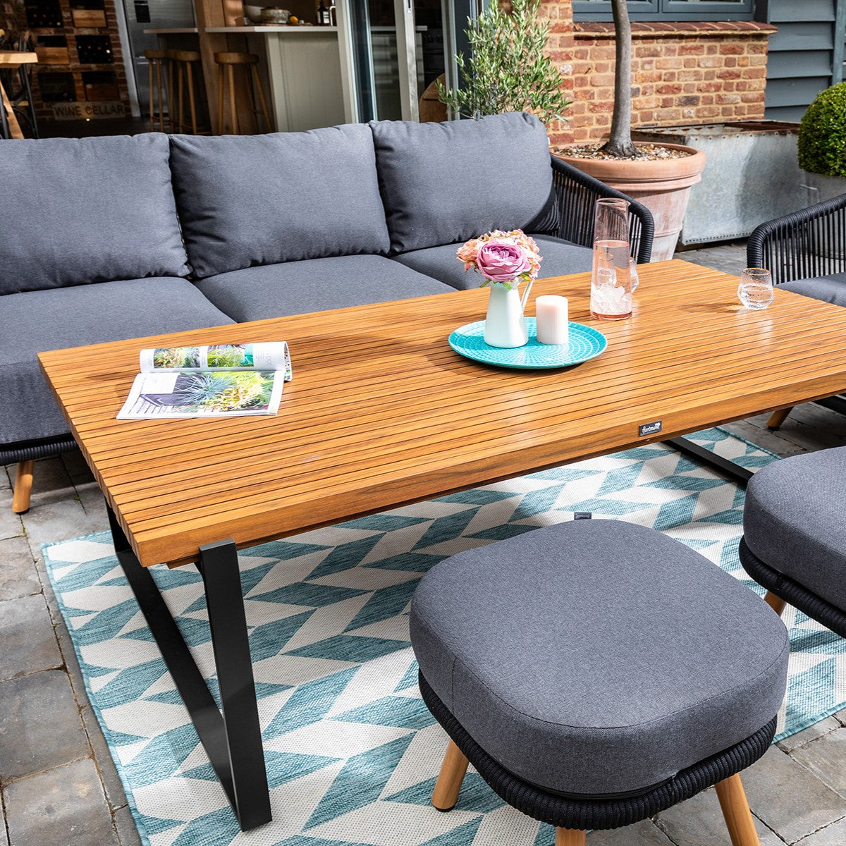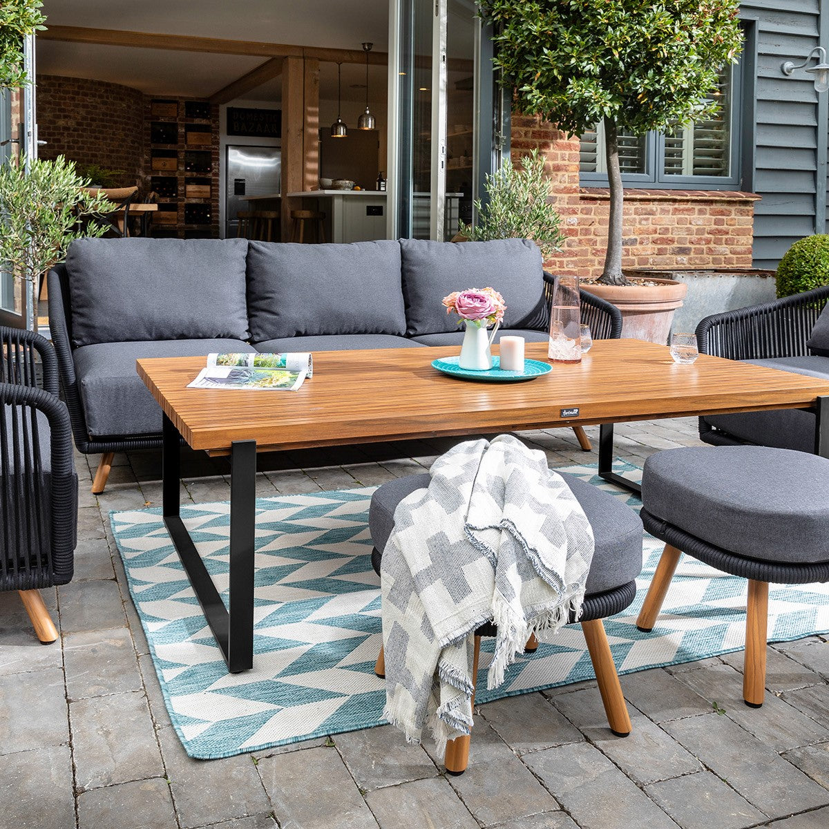 Blending oppulence and comfort with serene natural tones; the Hartman Etna Lounge Set is a breadth of fresh air for outdoor furniture. The Lounge Set is perfect for friends and family to get together for BBQ's or after dinner drinks. Fabricated with a beautiful all weather rope, which is paired with our extra chunky sumptuous Weatherready® cushions - the most comfortable cushions for outdoor furniture. Finished with our new Folie (wood-look) foiled aluminium table tops which give you the beautiful look of natural wood, without the discolouration and maintenance.